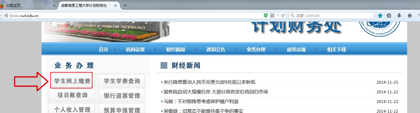 网上银行收费平台在计划财务处主页(http://www.qsheep.com)的位置: