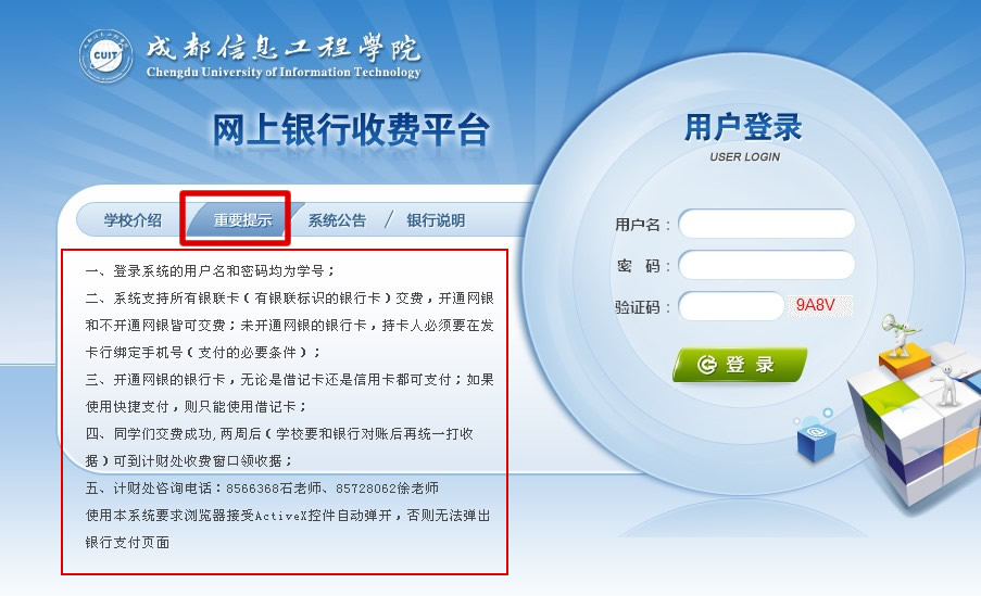 网上银行收费平台的有关事项在打开收费界面即可看见,如图所示: